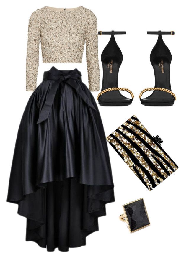 For fashion lovers who want to juggle clothing, I would recommend this deux pièce outfit. A classy black skirt, which highlights the top with sequins is a safe choice and fits on several types of silhouettes. Accessories in the same shades complete the outfit. From my point of view, this outfit does not require any other additions. You can step on the red carpet feeling impeccable and ready for fun.