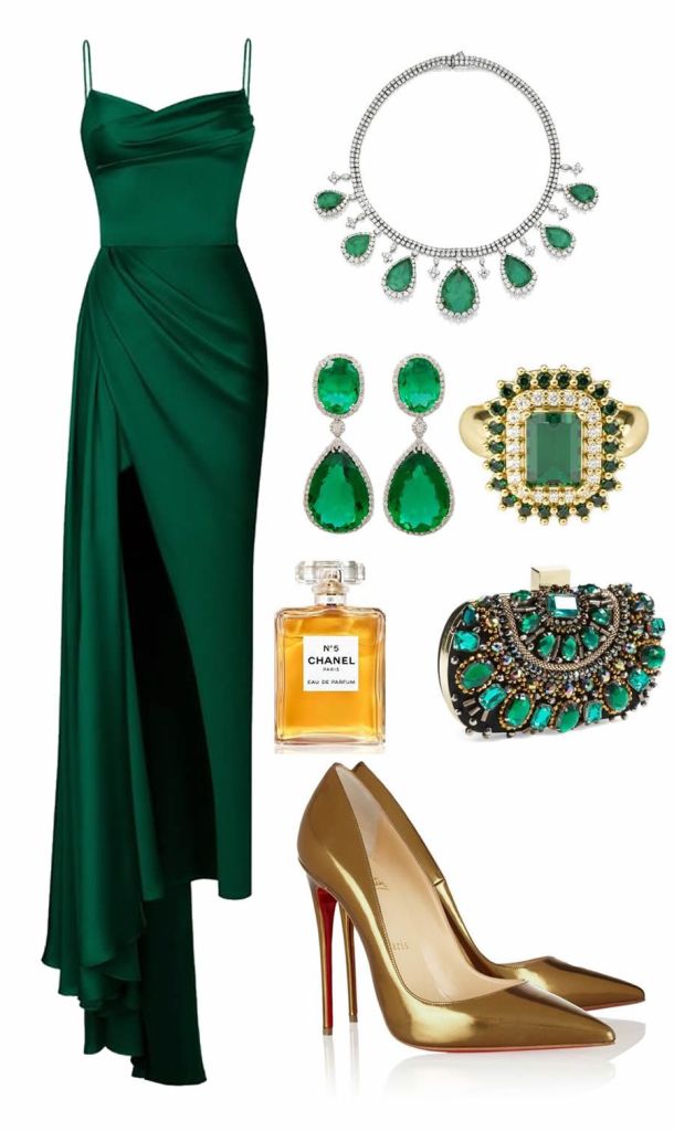 Of course, at such an event you can’t miss the outfits in strong, vibrant colors, whether it’s a bright red or emerald green. And if the party does not impose a dress code, then this outfit is in the right place at the right time. Accompanied by a perfume legend, which is also my favorite *see the article on the history of perfume*, will be perfect.